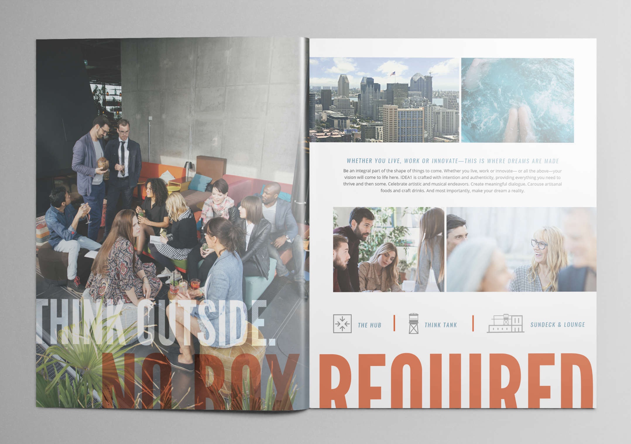 The “Life: Inspired” concept is a line dedicated to the movers and shakers, business entrepreneurs, and creatives that collaborate and create every day. We encompassed hidden messaging amongst the prominent “code” that carried through a majority of the print and digital collateral that includes buzzwords about IDEA1’s target demographic. Out of the box property promo items like sketch books and tote bags included creative inspired by local artists, a node to San Diego’s vibrant East Village.